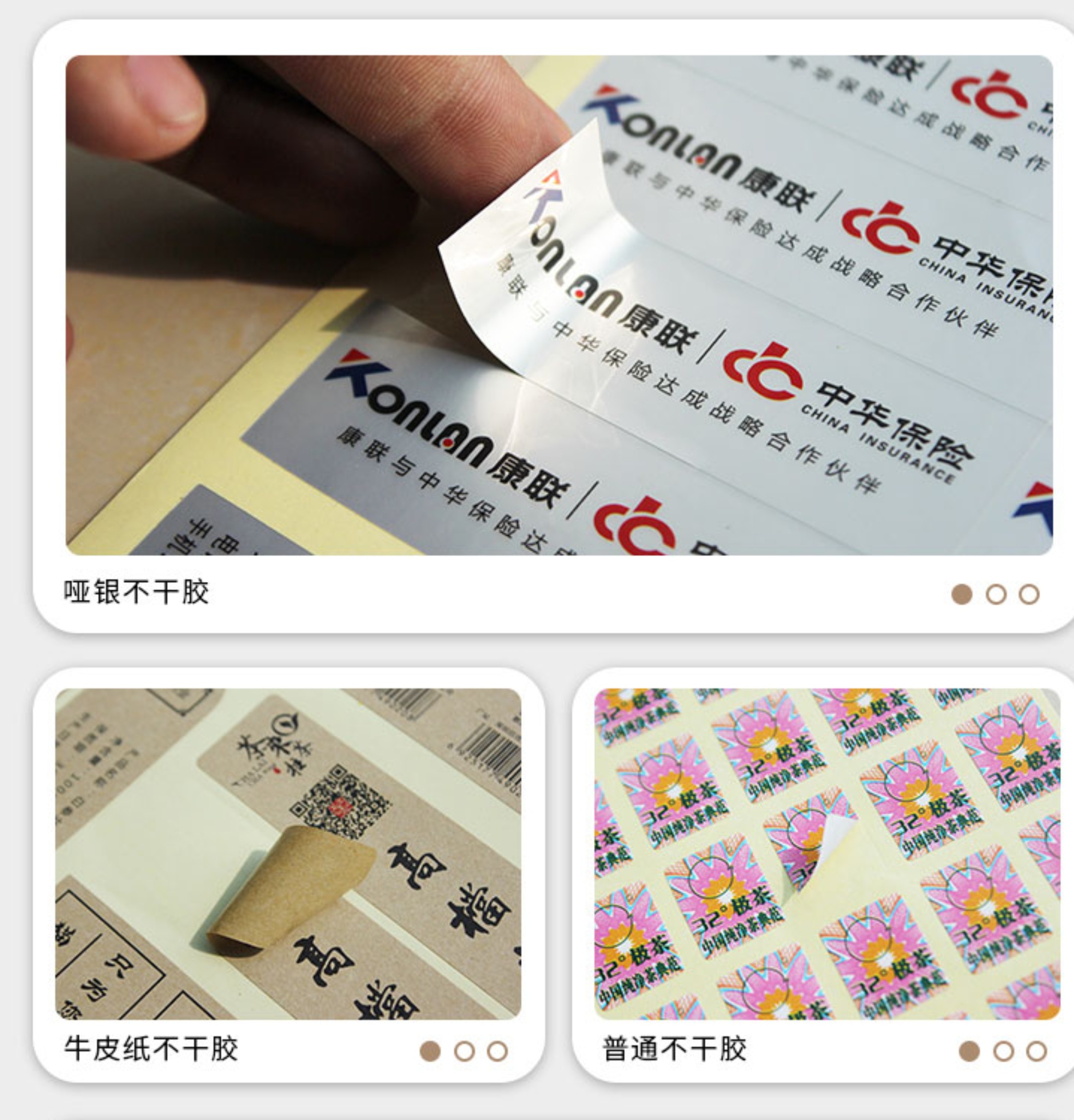 5、易碎紙不干膠標簽:用于電器、移動電話、食物等防偽封簽,剝離不干膠封簽后標簽紙立刻破碎不行再使用。